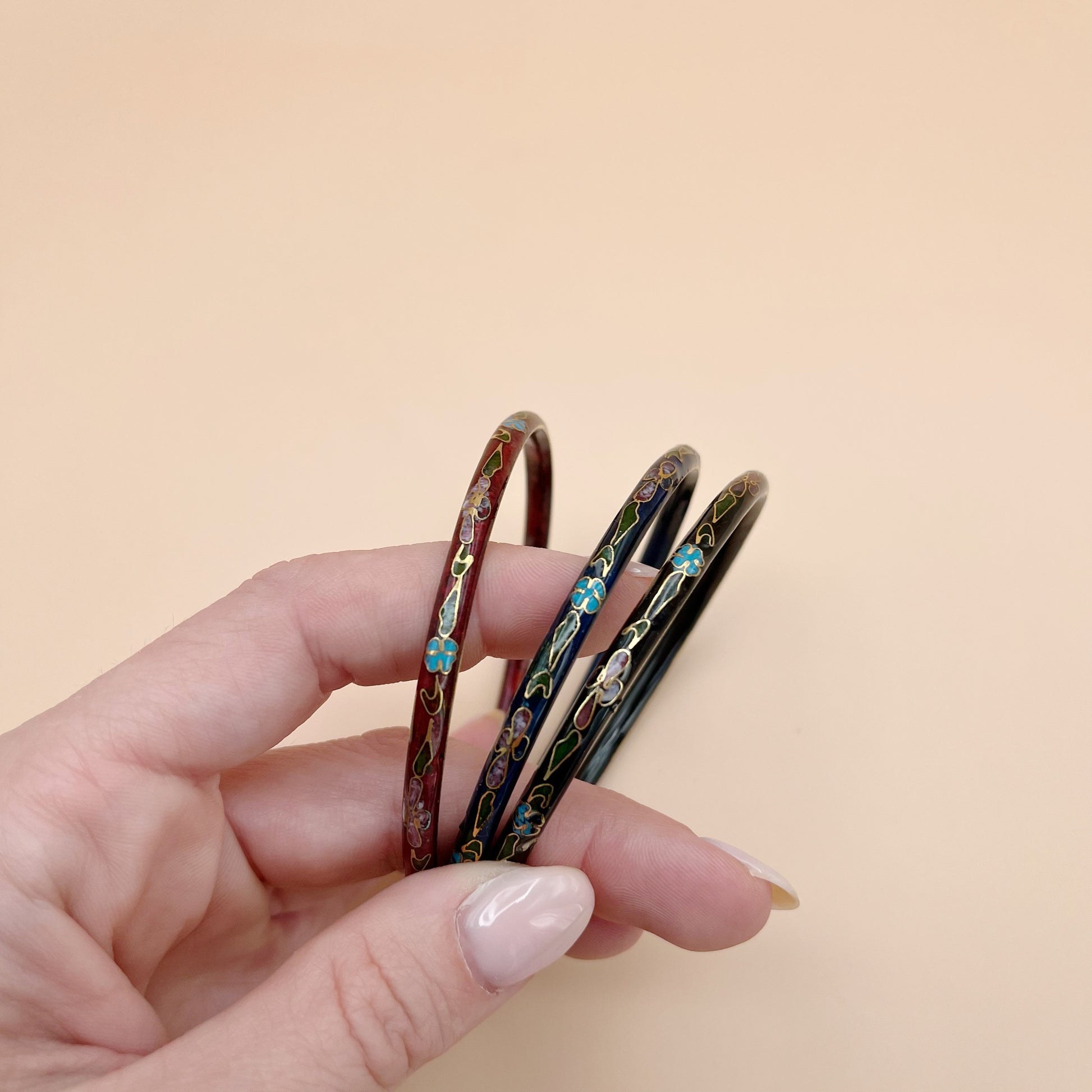 - Set of three cloisonné floral bangle bracelets